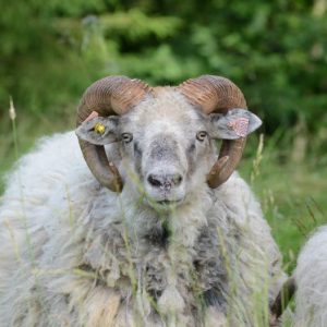 Staselige værhorn har inspirert til formen på denne rosa, som finnes på flere av de eldste vottene.